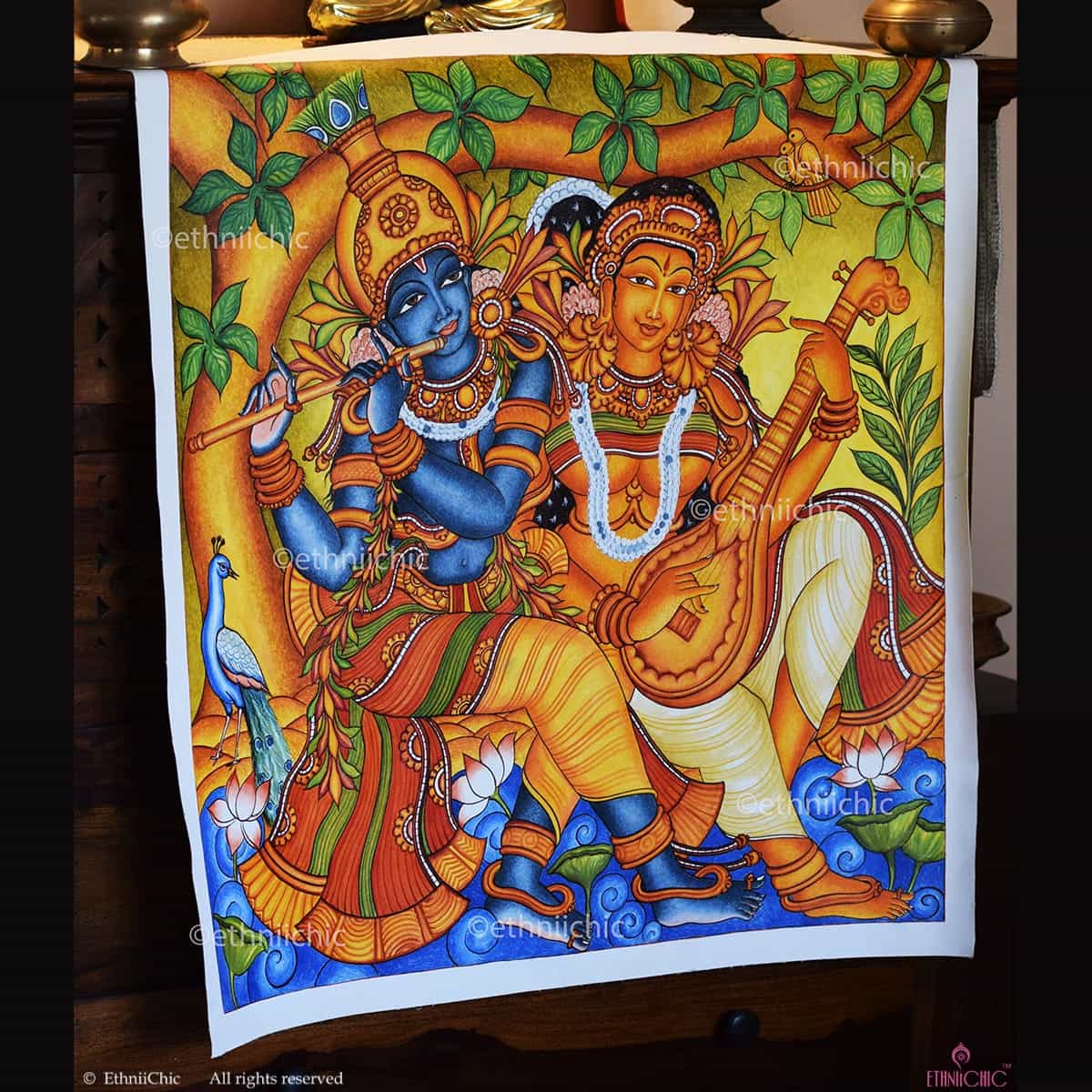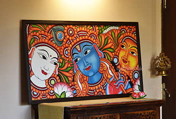 A commissioned Kerala Mural Painting on Canvas of size 4 feet x 2 feet of Krishna & Radha, was done for a customer in UAE.