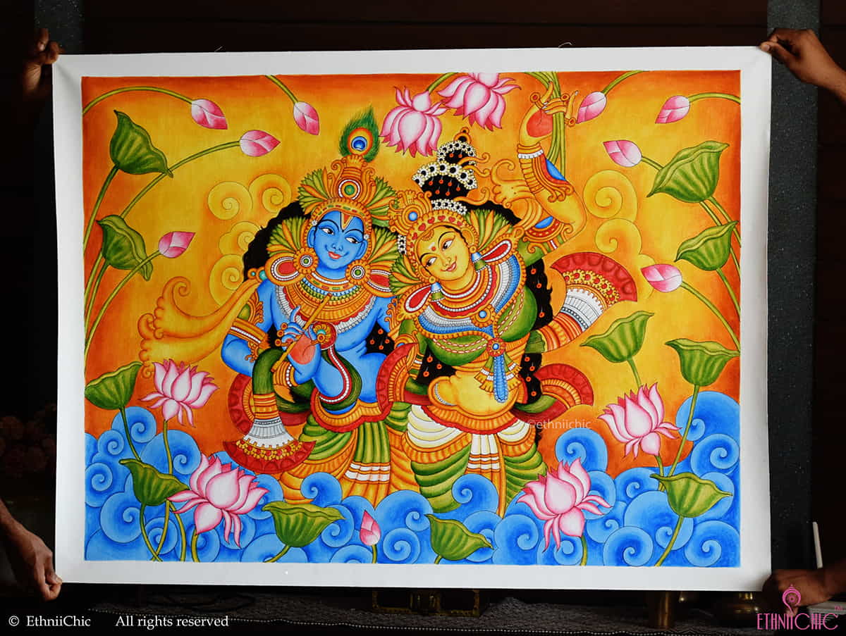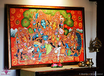A commissioned Kerala Mural Painting on Canvas of size 3 feet x 2 feet, for a dear customer in USA.