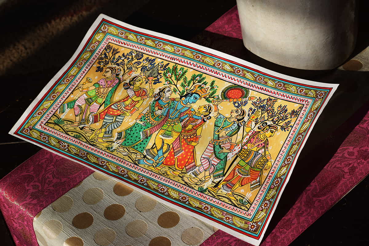 A commissioned Pattachitra Painting on paper of size 23 inches x 13 inches of Krishna & Gopis, was done for a customer in Germany.
