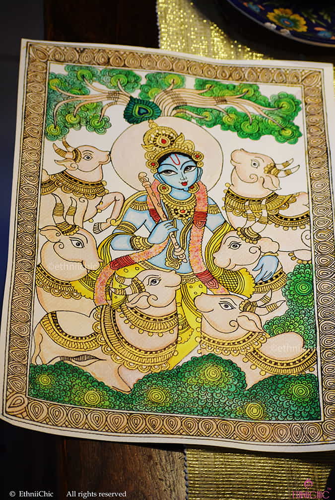 A commissioned A3 size contemporary Kalamkari painting of Krishna, was done for a customer in Bangalore.