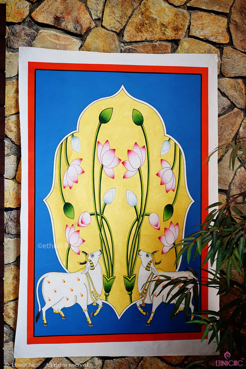 A commissioned Pichwai Painting on Canvas cloth of size 2 feet x 3 feet of Cows, was done for a customer in Chennai.