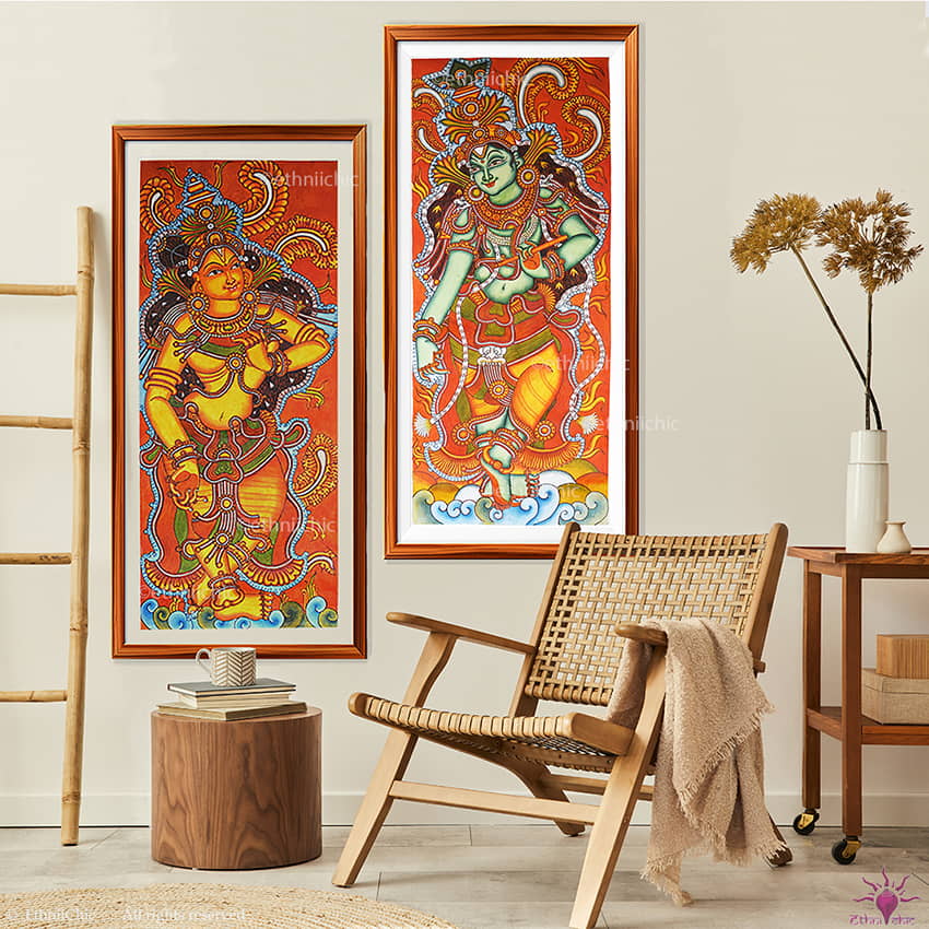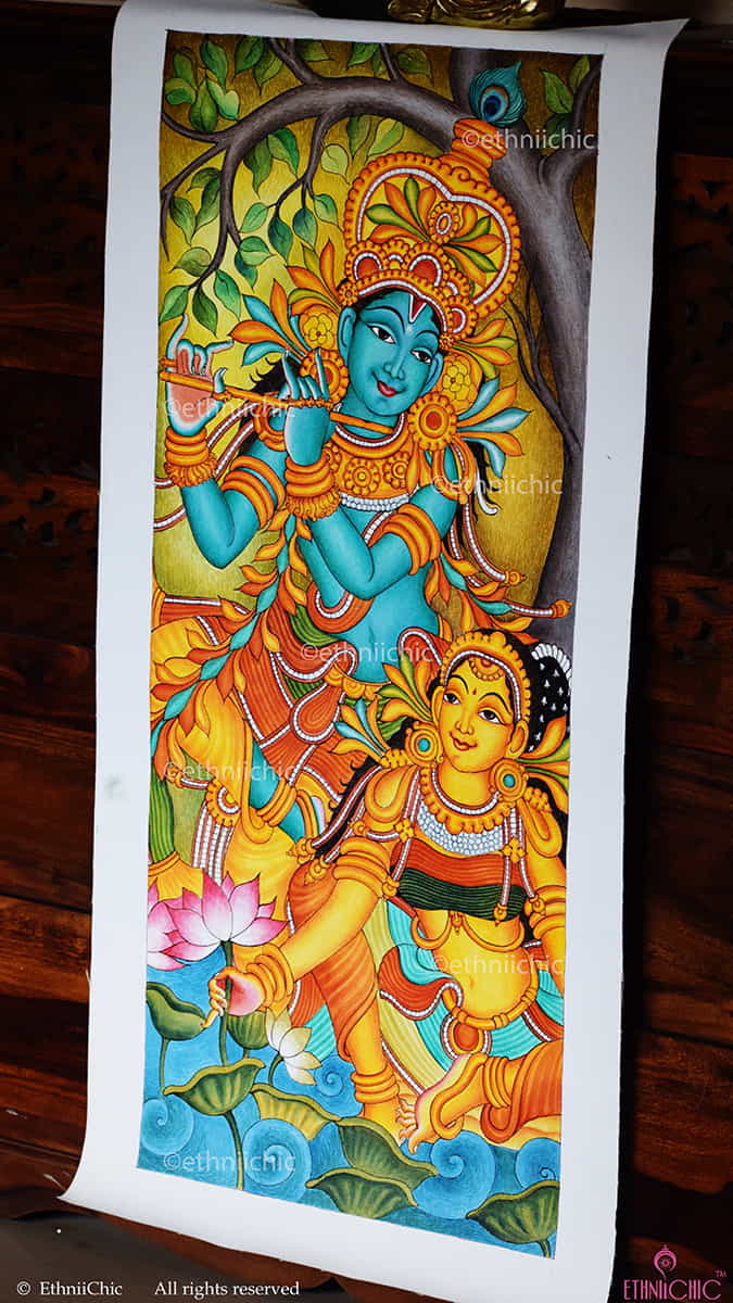 A commissioned Kerala Mural Painting on Canvas of size 3.75 feet x 1.75 feet each of Krishna & Radha was done for a customer in Ludhiana, Punjab.