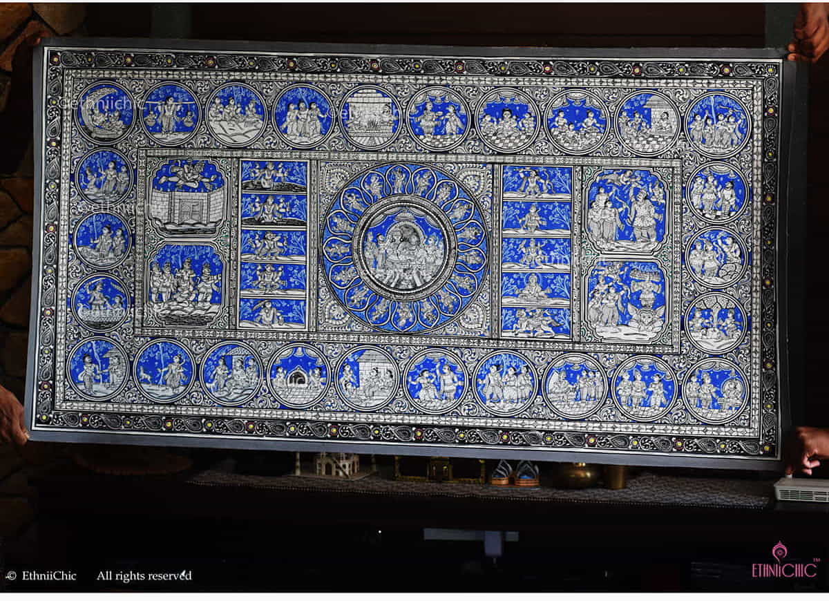 A commissioned Pattachitra Painting on Canvas of size 6 feet x 4 feet of Pattabhishek of Sri Ram , with details of various stories from Ramayan as the border of the painting, with Dashavathar shown on the sides , was done for a customer in Sydney.