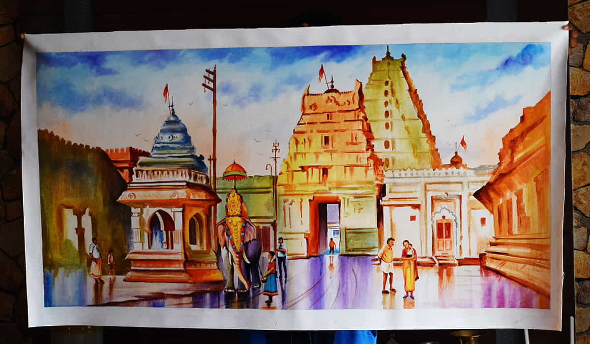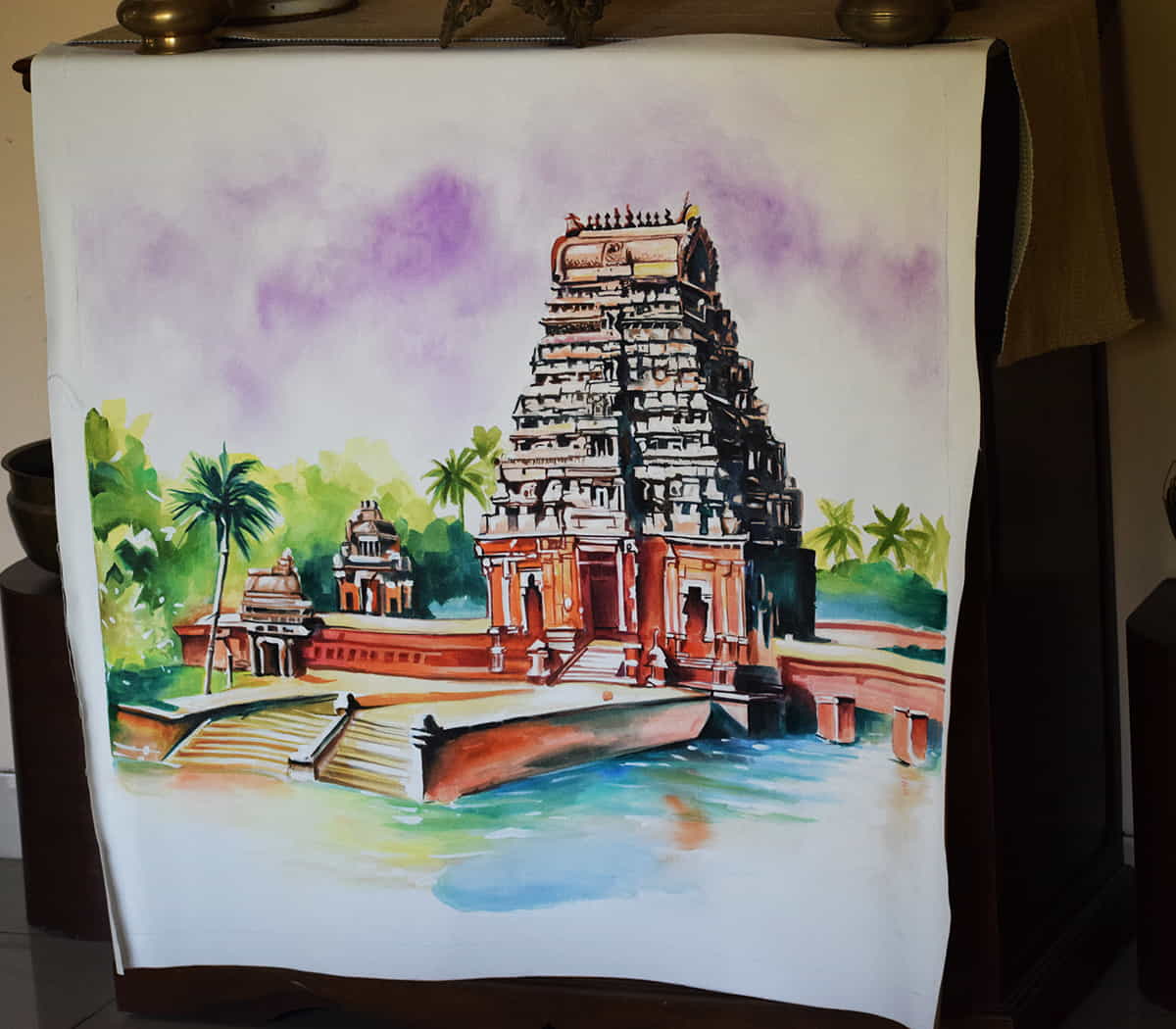 A commissioned Painting on canvas of size 5 feet x 2.5 feet of South Indian Temple, was done for a customer in USA.