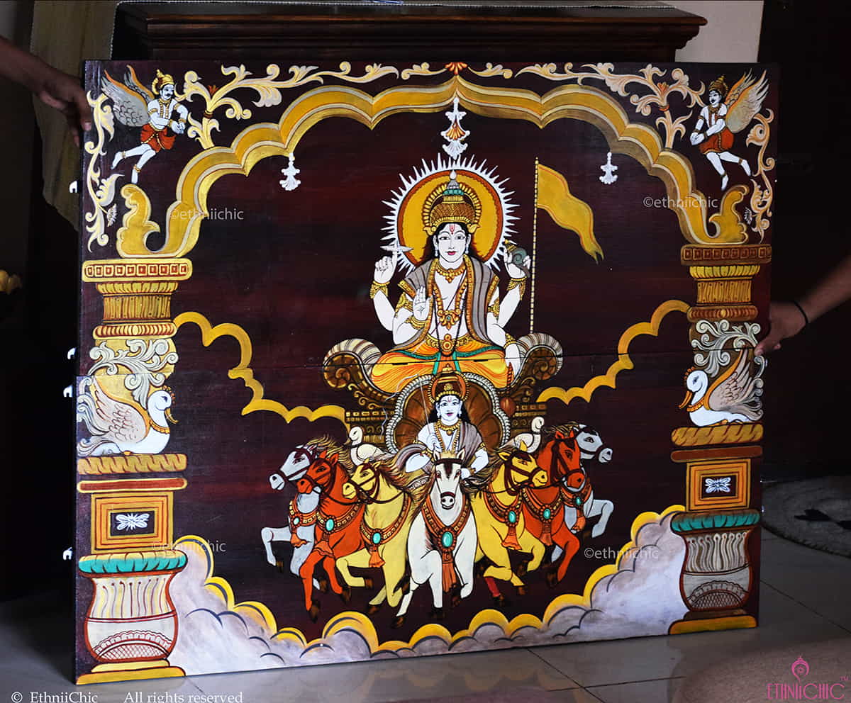 A commissioned Painting on the TV Panel of size 3 feet x 4 feet of Surya Bhagwan, was done for a customer in Bangalore.