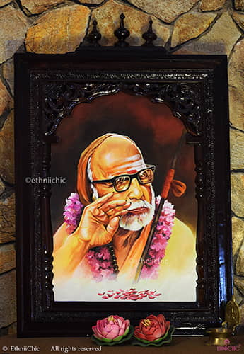A commissioned portrait painting of Kanchi Periyavar/Sankarachariyar done for a devotee in Melbourne.