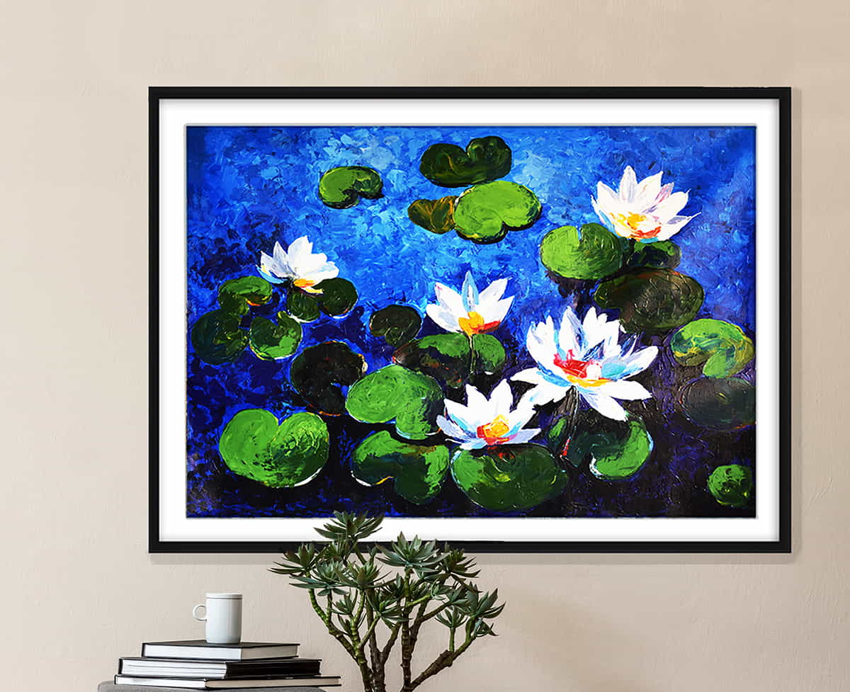 A commissioned Texture Painting on Canvas of size 3 feet x 2 feet of Lotus Pond, was done for a customer in Delhi.