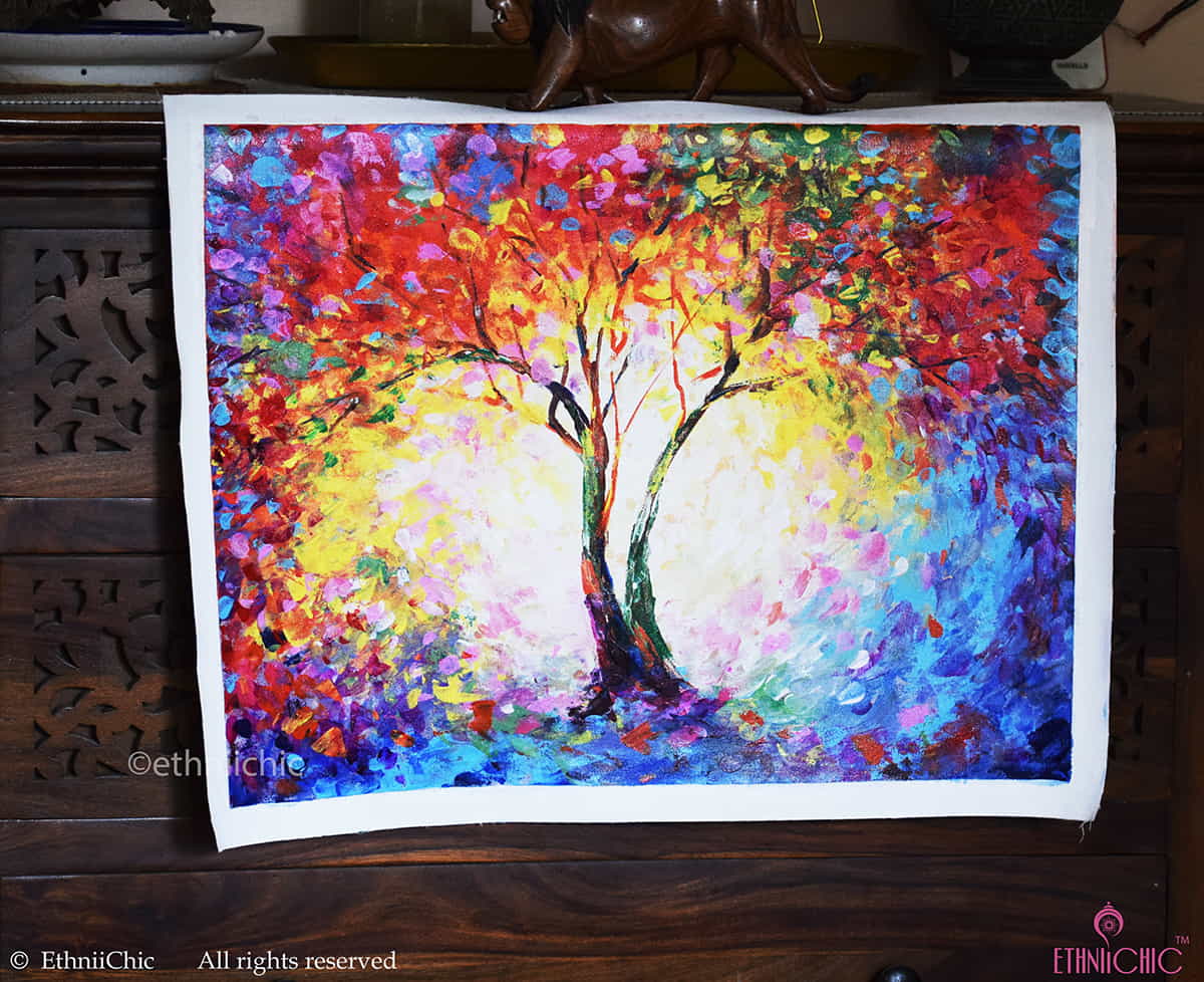 A commissioned Painting on canvas of size 2 feet x 1.5 feet of Tree of Life, was done for a customer in Canada.