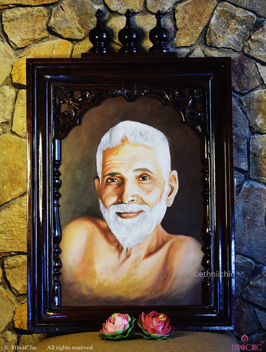 A commissioned portrait painting of Shree Bhagwan Ramana Maharshi was done for a devotee