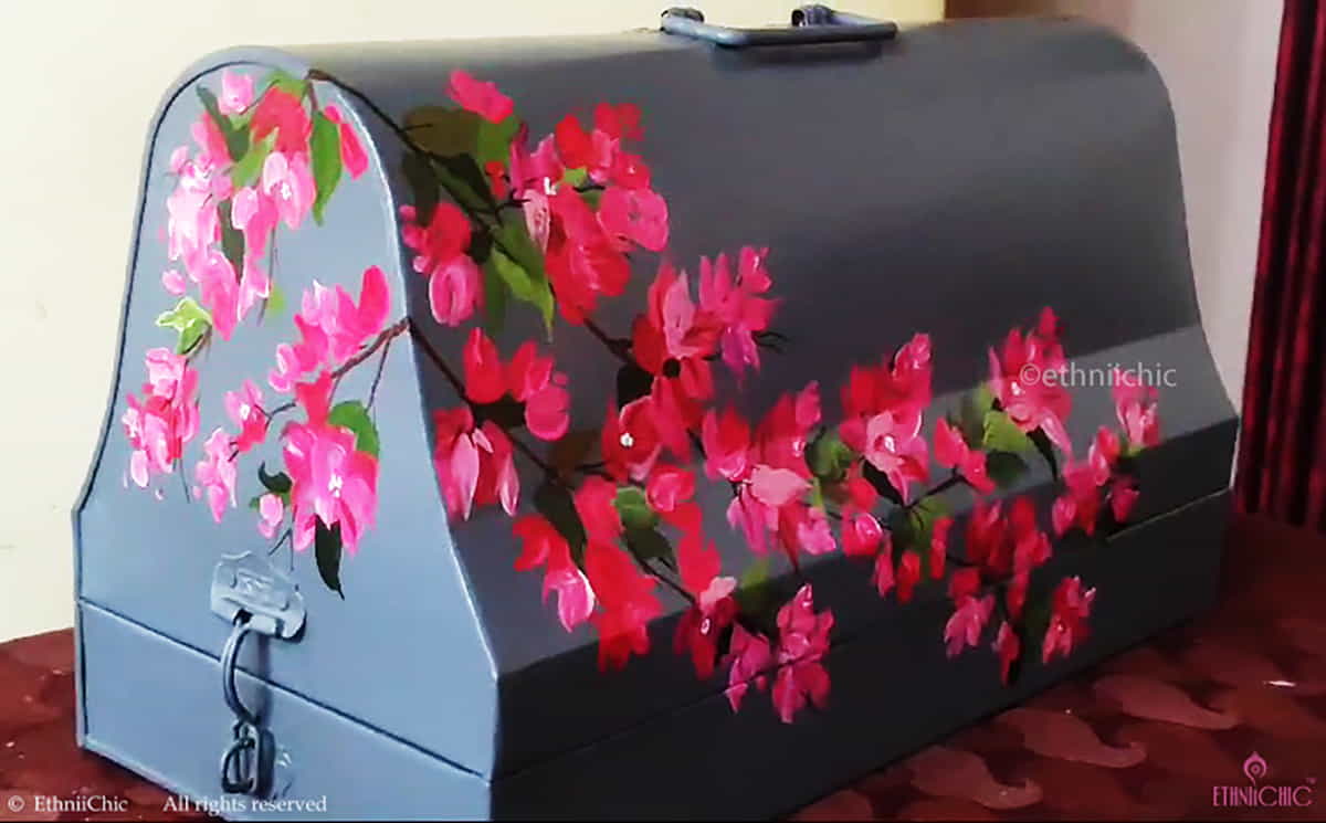 This was a commissioned work of painting a metal trunk which went as a trousseau box of the bride.