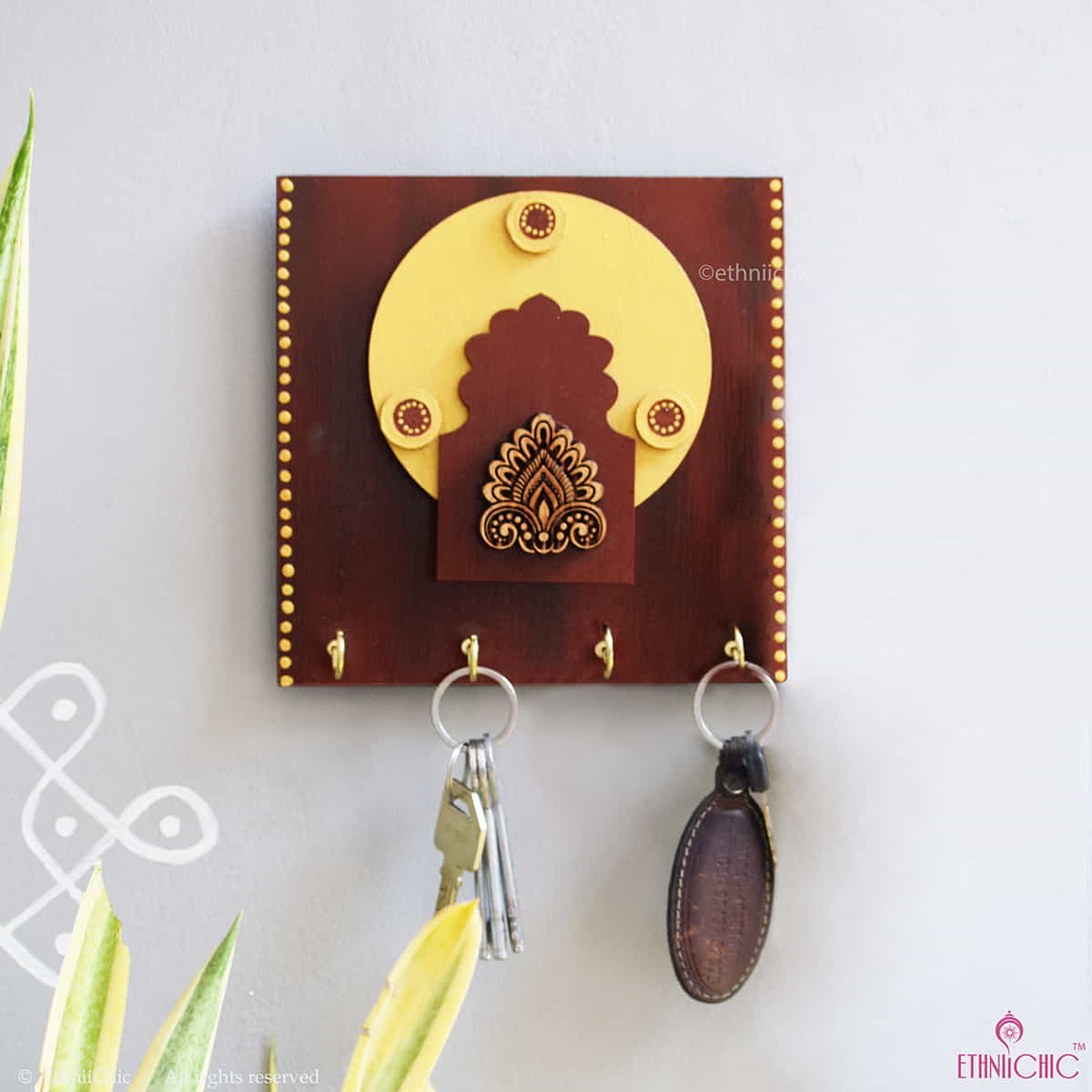 Designed to keep your keys organized, it features 4 sturdy hooks that can hold house keys, car keys, and other small essentials. The smooth wooden finish enhances its durability, ensuring long-lasting beauty and utility. Ideal for entryways, living rooms, or offices, this key holder seamlessly blends traditional art with modern functionality.