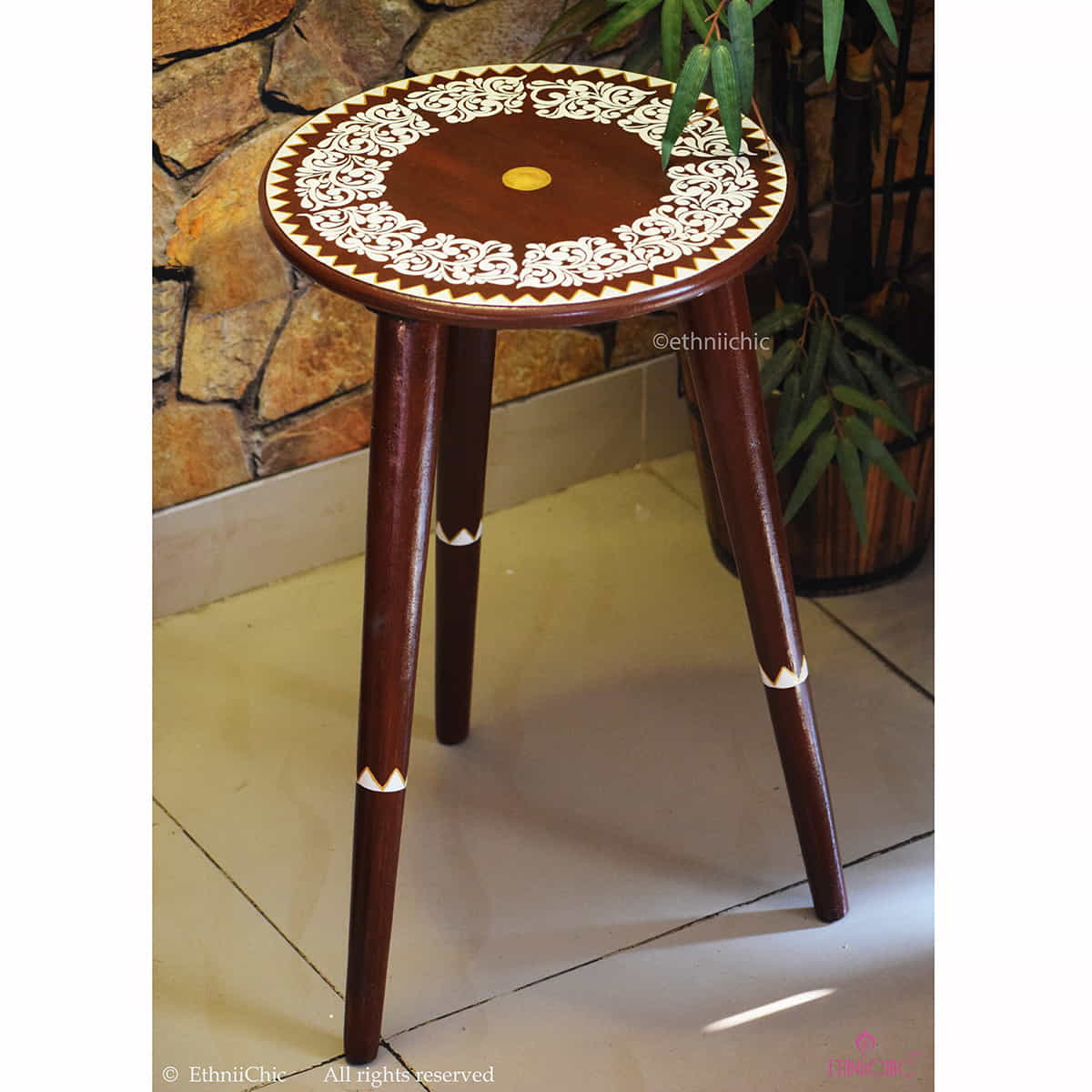 Handpainted Wooden Alpona Peg Table